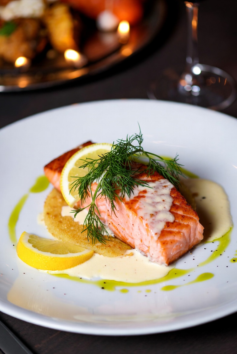 Estetyczny wygląd: Łosoś w sosie cytrynowym na talerzu to prawdziwa uczta dla oczu. Jego kolorystyka oraz tekstura sprawiają, że danie wygląda bardzo apetycznie.