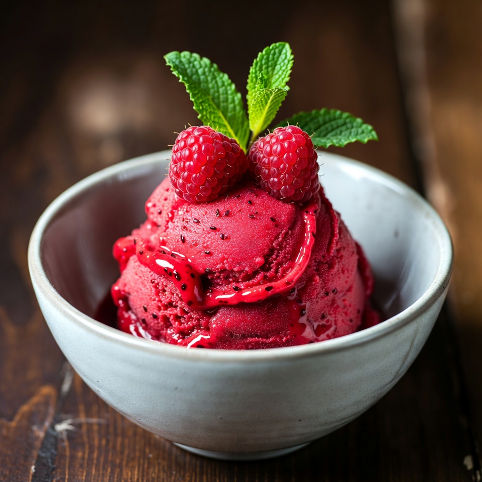 Z owocowym sosem – Udekoruj sorbet sosem malinowym lub truskawkowym, aby wzbogacić smak i dodać koloru.