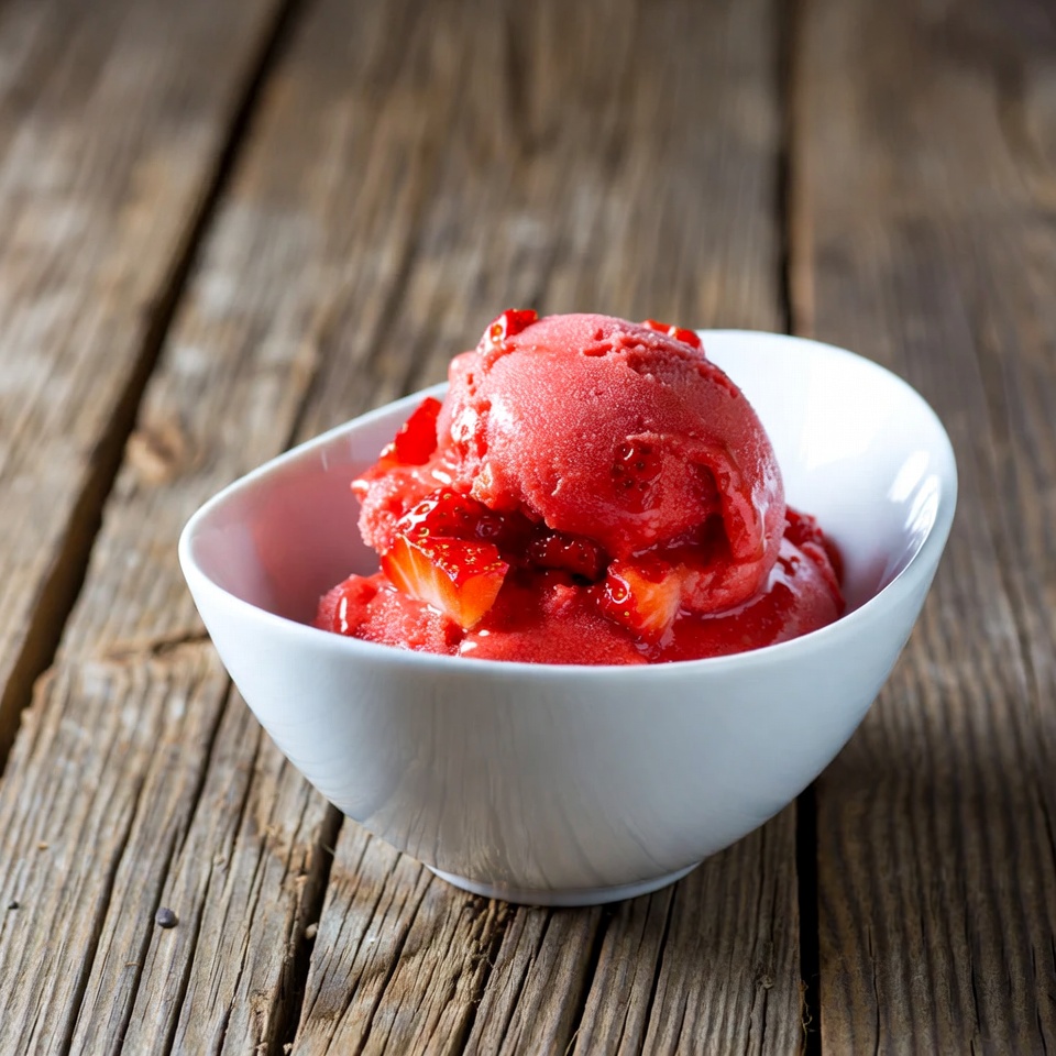 Podawaj od razu po nałożeniu, aby cieszyć się najlepszym smakiem świeżego sorbetu truskawkowego.